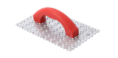 Render Scratching Float Size : 250 x 140mm with Zinc-plated 8mm steel barbs for improved grab and adhesion. For rendering and plastering applications. D-Grip handle